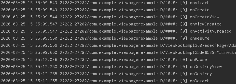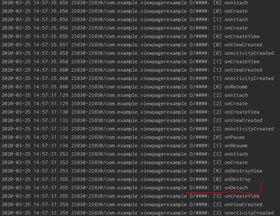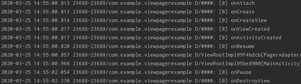 각각 10 페이지를 가지고 있는 FragmentPagerAdapter 와 FragmentStatePagerAdapter 의 Log를 통해 LifeCycler 확인함.