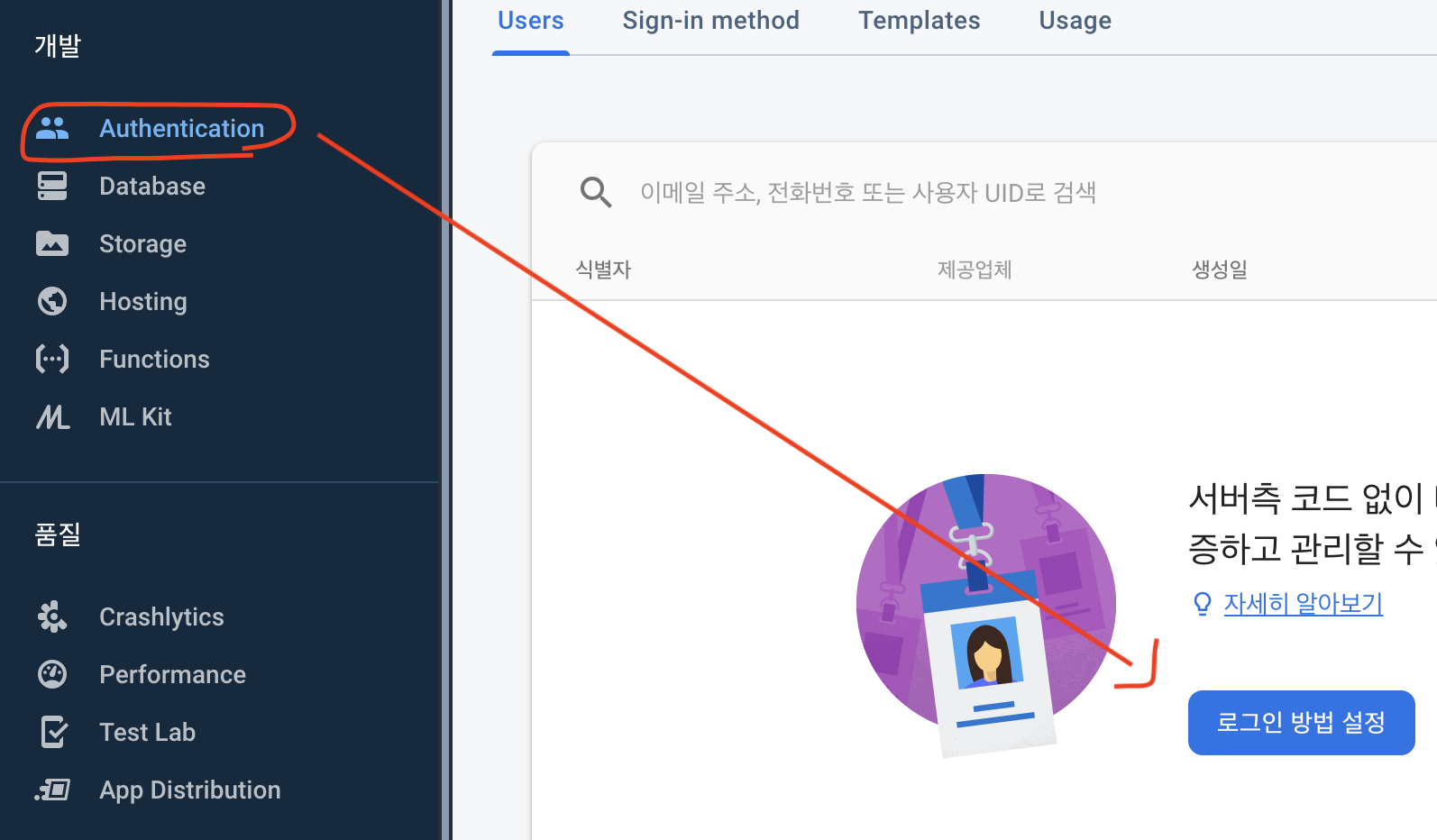사용자 생성하기 Firebase 프로젝트에서 신규 사용자를 생성하는 데는 CreateUserWithEmailAndPassword 메소드를 호출하는 방법과 Google 로그인 또는 Facebook 로그인 등의 제휴 ID 공급업체를 사용하여 사용자의 최초 로그인을 처리하는 방법이 있습니다. 또한 Firebase Console '인증' 섹션의 '사용자' 페이지에서 비밀번호 인증을 사용하는 신규 사용자를 생성할 수도 있습니다. 현재 로그인한 사용자 가져오기 현재