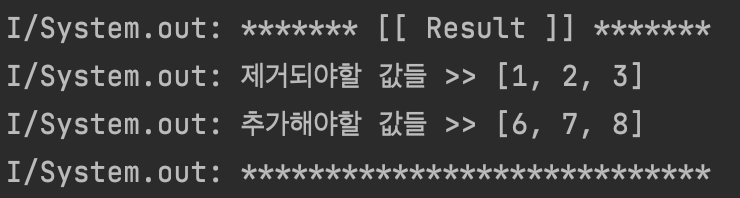 println("제거되야할 값들 >> ${current.filterNot { it in new }.toString()}")