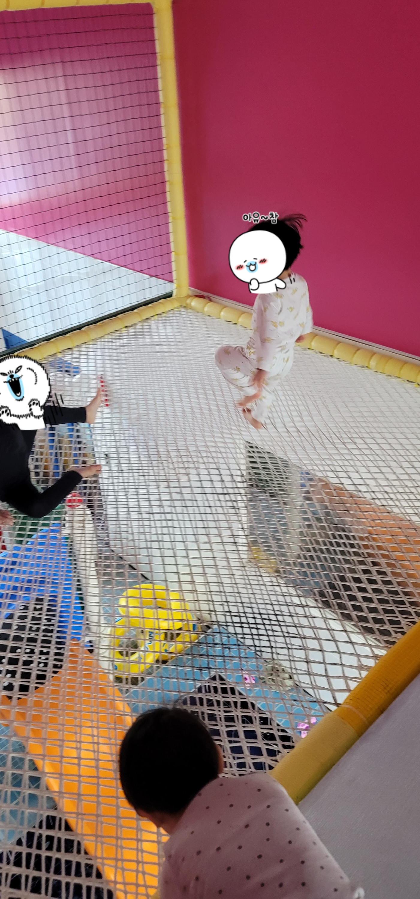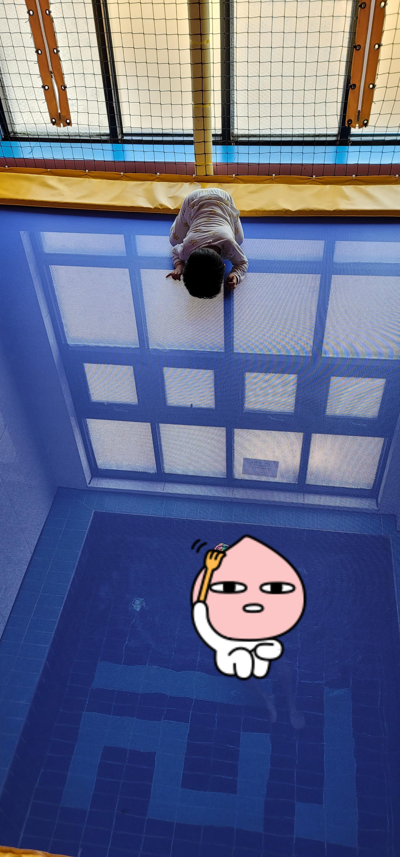 밑에 수영장이 있는데 좀 높이가 있다 보니 무섭기도 하지만 잘 뛰어놀았다