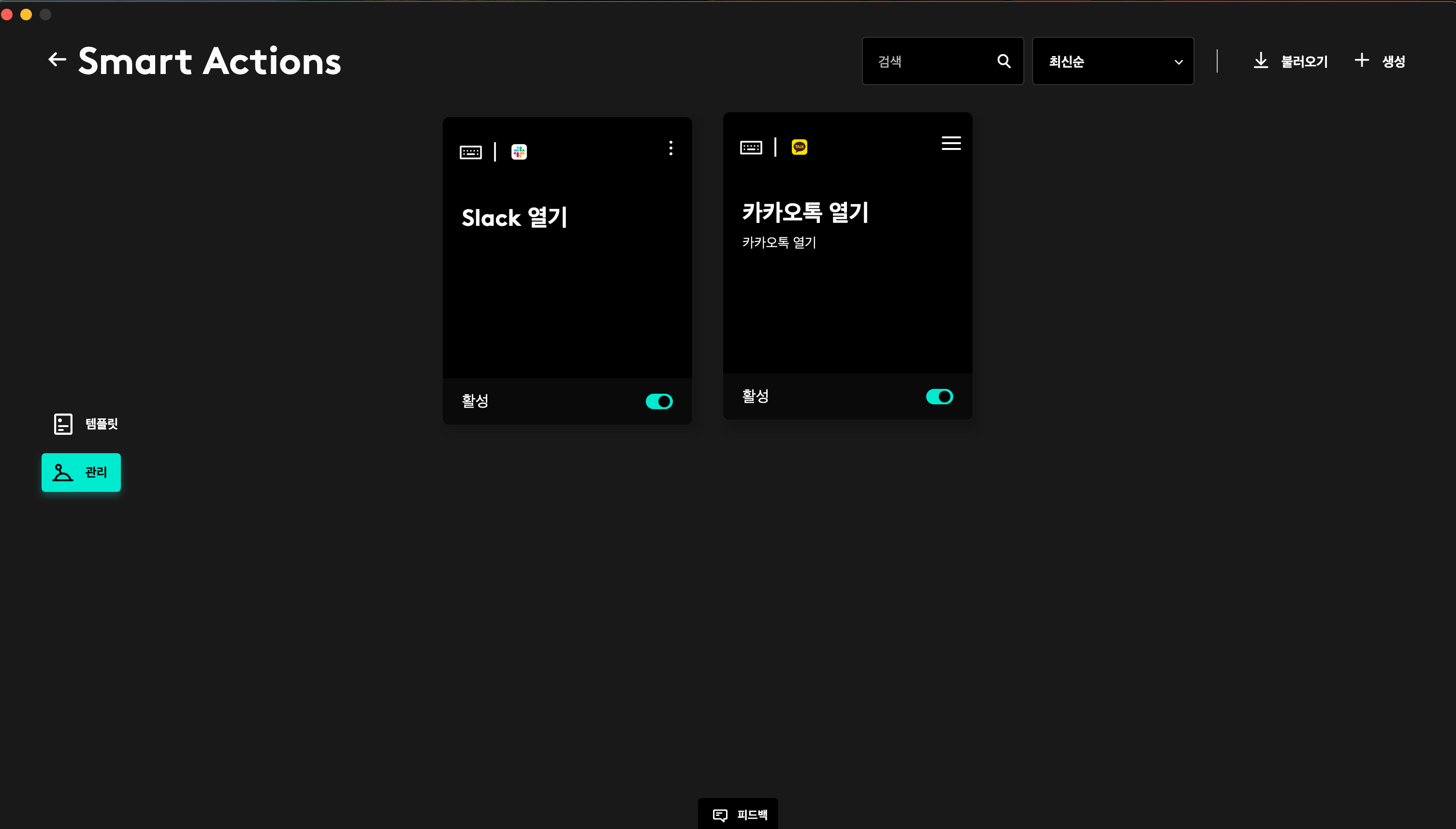 카카오톡 열기랑 슬렉 열기로 바꿔봤다